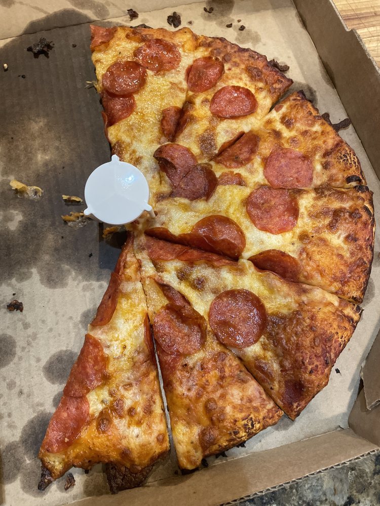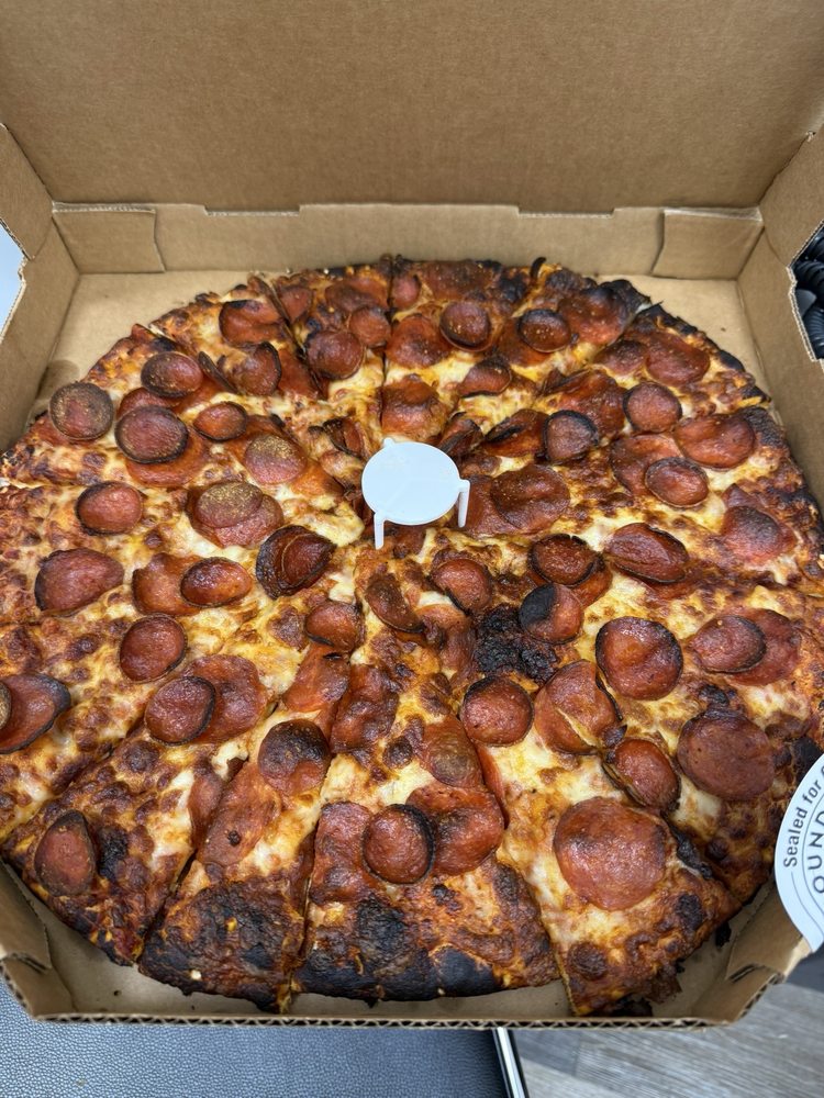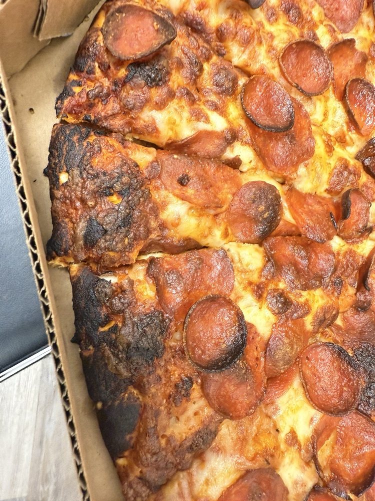 Sausage, pepperoni, salami, linguica, mushrooms, olives, onions, and green peppers on zesty red sauce. 12 slices.